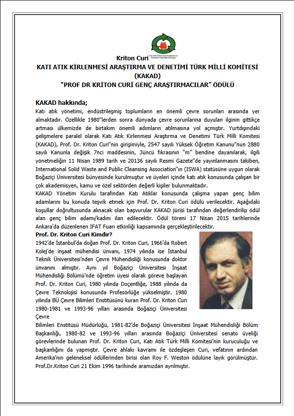Prof. Dr. Kriton Curi Çevre Ödülleri